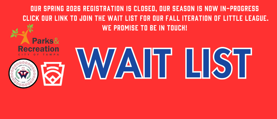 Registration is now closed, we are now asking if you are interested in West Tampa Little League to Fillout our waitlist form by clicking here.