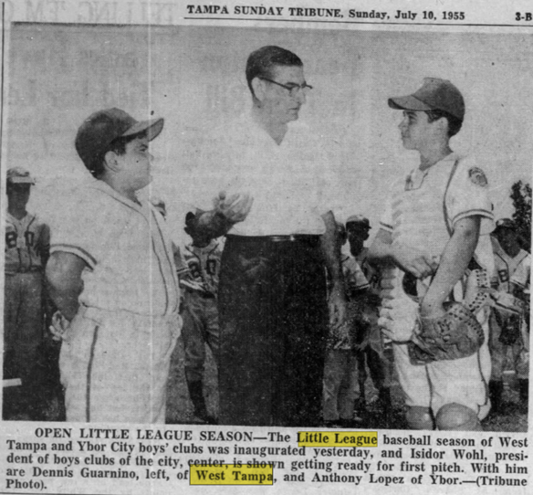 The first mention of youth baseball in West Tampa dates back to July 9th, 1955 when a West Tampa Boys Club Little League first began, at this time we don't know how long the league operated but most likely only lasted this one season in what was an attempt to bring baseball from its cigar and social society roots to what is now known as Youth Sports. A July 9th start is extremely unorthodox in today's schedule, the world series in Williamsport was held between August 23rd & 26th, 1955 leaving only 4-5 weeks to play this inaugural season. Today West Tampa starts its spring season in January.